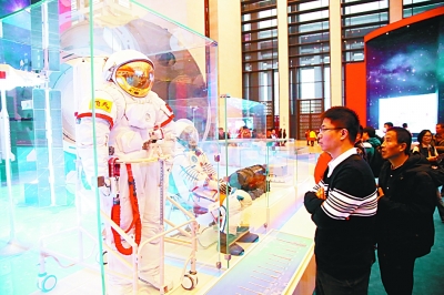 “可上九天攬月,可下五洋捉鱉”。一邊是航天技術(shù)展區(qū),一邊是航海技術(shù)展區(qū),完美對應(yīng)著詩句,一上一下,延展著人類對于世界的認(rèn)知和想象。天宮二號空間實驗室、嫦娥三號月球探測器以及蛟龍、海龍、潛龍“三龍兄弟”深海探測裝備模型,讓很多在場的孩子發(fā)出贊嘆之聲。