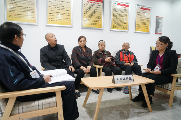 社區“順順吧”的街道干部、法院民警、駐點律師、街道民調員主動上門,通過多方調查了解,多次上門幫老人召開家庭會議,從法律、情理等多角度耐心勸說。馮婆婆一家最終達成協議,每位子女公平分配,且共同承擔老人的贍養義務,一家人重歸于好。