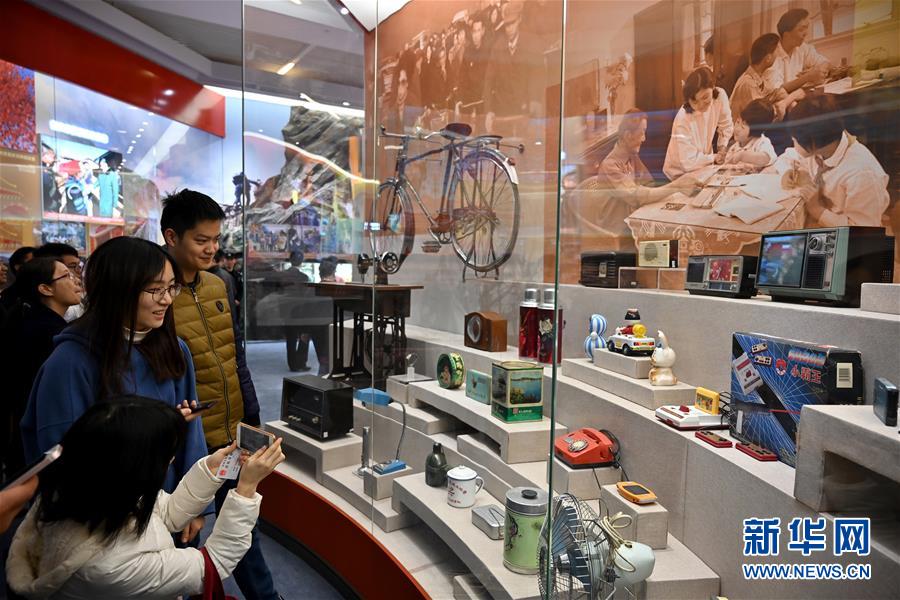 參觀者在“歷史巨變”展區觀看生活用品陳列。新華社記者李鑫 攝