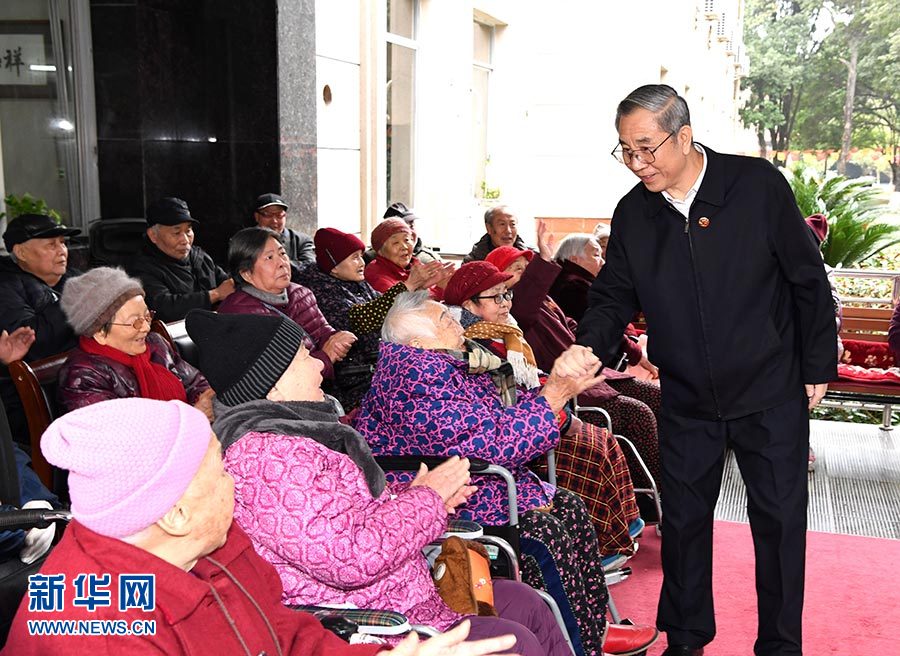 12月12日,全國(guó)政協(xié)副主席、中央代表團(tuán)副團(tuán)長(zhǎng)馬飚率中央代表團(tuán)五分團(tuán),帶著以習(xí)近平同志為核心的黨中央的親切關(guān)懷和全國(guó)各族人民的美好祝福,在賀州、桂林看望慰問(wèn)各族各界干部群眾。這是馬飚在桂林市夕陽(yáng)紅養(yǎng)老中心看望老人。 新華社記者 周華 攝
