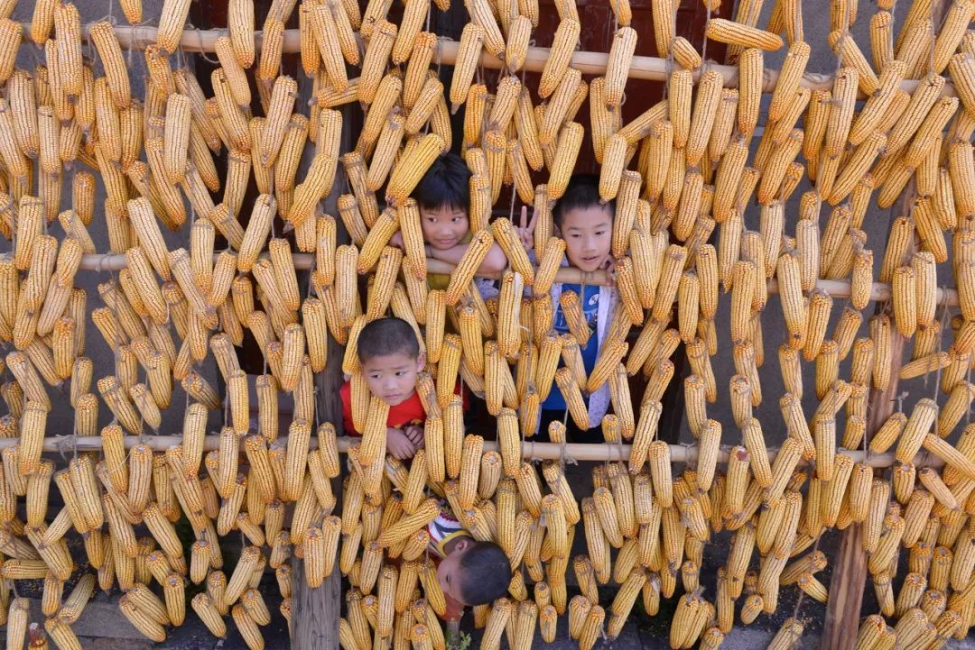 2018-10-06,三明市尤溪縣。三明市尤溪縣洋中鎮的桂峰村舉辦曬秋節,小朋友們在黃黃的玉米堆中玩耍。作者:旺