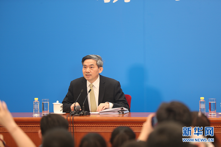 3月4日,十三屆全國人大一次會議在人民大會堂新聞發布廳舉行新聞發布會,由大會發言人張業遂就大會議程和人大工作相關的問題回答中外記者的提問。圖為新聞發布會主持人何紹仁。新華網/中國政府網 陳杰 攝