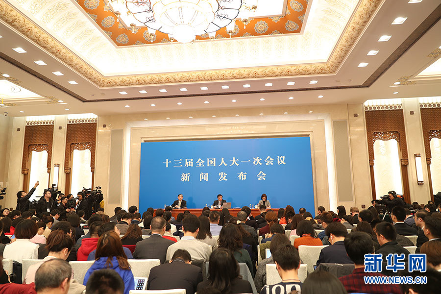 3月4日,十三屆全國人大一次會議在人民大會堂新聞發布廳舉行新聞發布會,由大會發言人張業遂就大會議程和人大工作相關的問題回答中外記者的提問。圖為新聞發布會現場。新華網/中國政府網 陳杰 攝