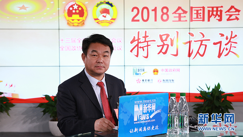 全國人大代表、江蘇百斯特投資集團有限公司董事長王強眾做客新華網2018全國兩會特別訪談 新華網 楊锘攝