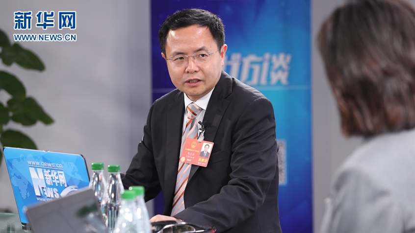 圖為全國人大代表、致公黨上海市委專職副主委邵志清做客2018全國兩會新華訪談。新華網發郭小天攝