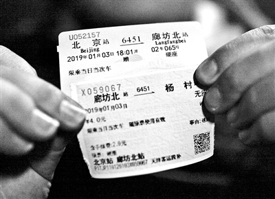 秘京春告訴北京青年報(bào)記者,6451次最初是給鐵路職工上下班的通勤車,使用最簡(jiǎn)易的車廂,鐵路職工免費(fèi)乘坐,同時(shí)面向社會(huì)開(kāi)放,由于票價(jià)低廉,非常貼近普通百姓。但隨著時(shí)代發(fā)展,很多老綠皮車線路停運(yùn)。為留作紀(jì)念,秘京春購(gòu)買(mǎi)了6451/6452次最后一趟的全程車票,單程票價(jià)6.5元。但他并不打算坐滿全程,而是到廊坊北下車,再轉(zhuǎn)乘別的列車返京,用他的話說(shuō)是“買(mǎi)長(zhǎng)坐短”。