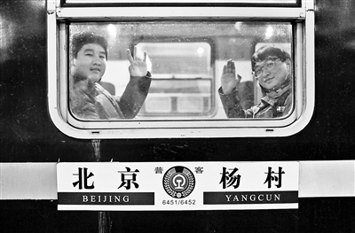 相比平時(shí)的車廂,最后一趟6451次多了不少車迷走來(lái)走去,有人忙著補(bǔ)票,有人忙著拍照。列車走行37分鐘到達(dá)黃村車站,北青報(bào)記者隨著二三十名乘客下車。列車停靠3分鐘,又有百余名乘客陸續(xù)上車,將5節(jié)車廂幾乎坐滿。一聲清脆的鳴笛后,6451次緩緩消失在了夜幕中。今天上午,6452次將從楊村開(kāi)回北京站,這對(duì)老綠皮車將宣告停運(yùn)。