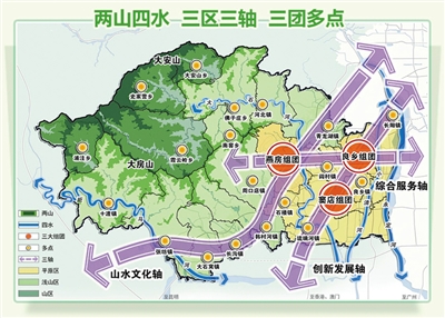 門頭溝空間結構為“一城、兩帶、三點、多脈”。