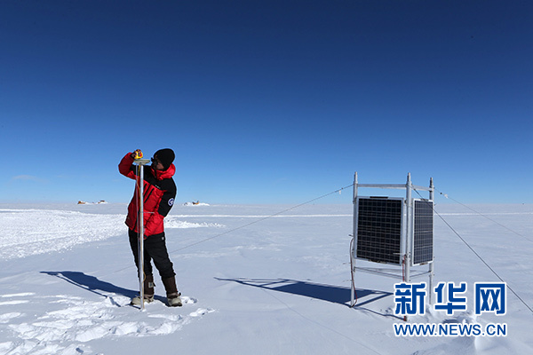 1月5日,科考隊員楊元德用GPS進行冰流速測量。新華社記者 劉詩平 攝