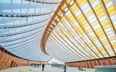 “館頂的琉璃瓦是仿真的,實際上是鋁合金型材。既可以模擬傳統建筑的質地,也能節約成本,這是現代科技元素在北京世園會的獨特運用?!崩桁n對記者說。中國館的底層展廳還采用了覆土被動房技術,利用地道風,降低館內空調使用能耗。