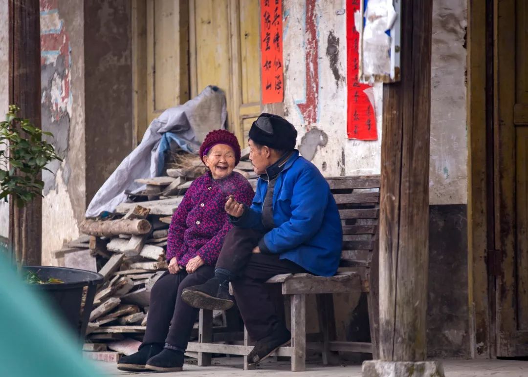 2019-01-27,湖北利川。相伴終生,白頭到老,就是最浪漫的事。利川市黃泥塘一對夫妻在一起開心地聊天。作者:利川六哥