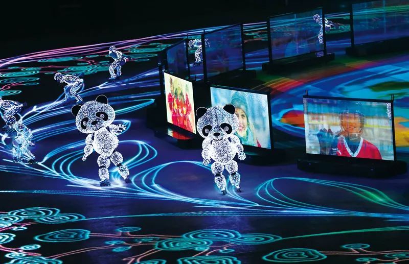 2018年2月25日,在平昌冬奧會閉幕式“北京8分鐘”表演中,由沈陽新松機器人自動化股份有限公司研發的智能移動機器人與輪滑演員進行表演。 新華社記者 李鋼/攝