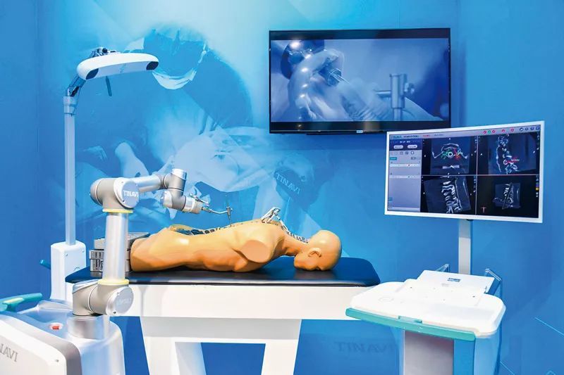 2018年11月22日, 在“偉大的變革——慶祝改革開放40周年大型展覽”上,第三代國產骨科手術機器人“天璣”正在模擬做手術,它是國際上首個適應癥覆蓋脊柱全節段和骨盆髖臼手術的骨科機器人,性能指標達到國際領先水平。 麥田/視覺中國