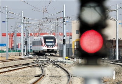 1月29日,新機(jī)場(chǎng)線列車在測(cè)試運(yùn)行。資料圖片/新京報(bào)記者 浦峰 攝