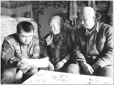 “尋親”的線索就這樣斷了。正當(dāng)大家一籌莫展時(shí),官兵們從另外一個(gè)村打聽(tīng)、找到了恰依肯老人的外孫,這才得知,恰依肯夫婦早在10年前就搬到了鐵熱克提鄉(xiāng)阿克哈巴南村生活。