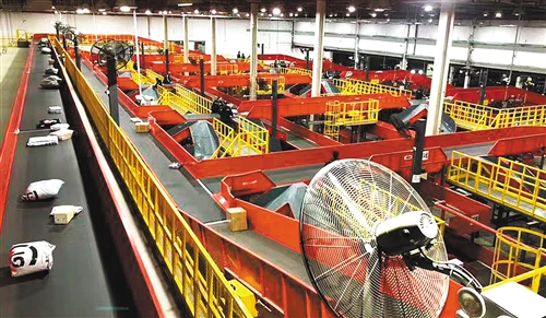 順豐速運(yùn)采用雙層自動(dòng)分揀系統(tǒng),大大提高電子單識(shí)別效率。吉蕾蕾 攝