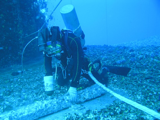 船上鋒利的物品,甚至是生長在沉船上的海蠣子的堅硬外殼,也會成為潛水員的潛在威脅——如果臍帶被劃破,甚至切斷,潛水員就有窒息的危險。
