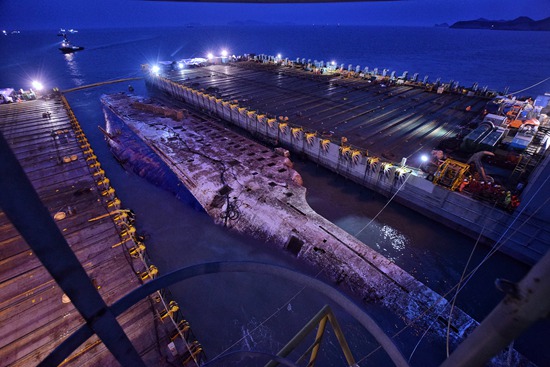 “世越號”打撈出水