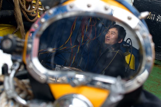 因為經(jīng)常要在淤泥里探摸,潛水員在水底的移動大多都是“爬”著完成。在韓國搜尋“世越號”沉船遇難者遺骨時,潛水員就是爬著,把沉船方圓5海里的海底,每一寸都摸了一遍。