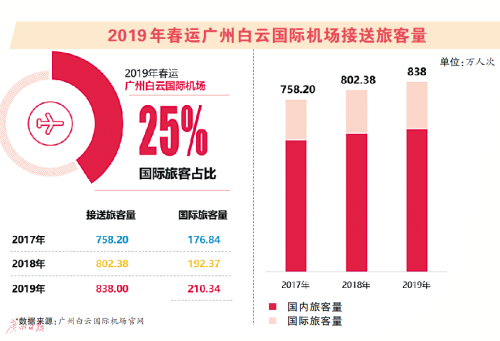 白云國際機場接送旅客量近838萬人次,其中國際旅客量近210萬人次,增長超過9%。