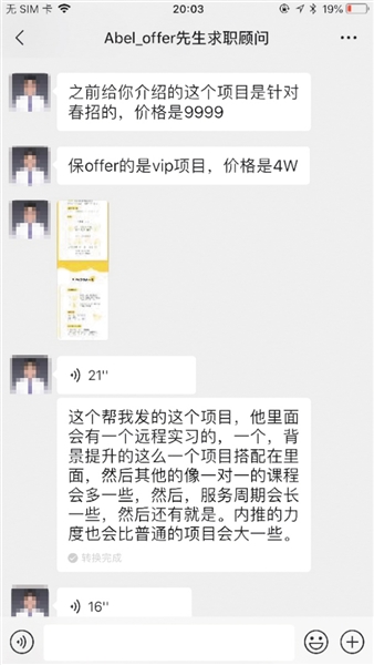 此類付費內推或者“保offer”計劃是否靠譜?上海某大學一位大四學生趙強(化名)就曾遭遇花費兩萬余元報名后,求職中介機構并未完成其承諾求職企業的情況。