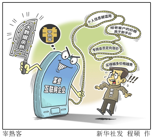 俗話說,人熟為寶。在傳統(tǒng)商業(yè)道德里,熟客應該享受優(yōu)待。然而,如今人們發(fā)現,熟客往往頻頻挨宰:個人信息被濫用、給老客戶的價格高于新手價、專挑會員定向漲價、買得越多價格越貴……一些網絡平臺用大數據技術收集分析消費者偏好、消費能力等信息后,不約而同地把矛頭指向熟客,以至于有人感嘆“最懂你的人傷你最深”。