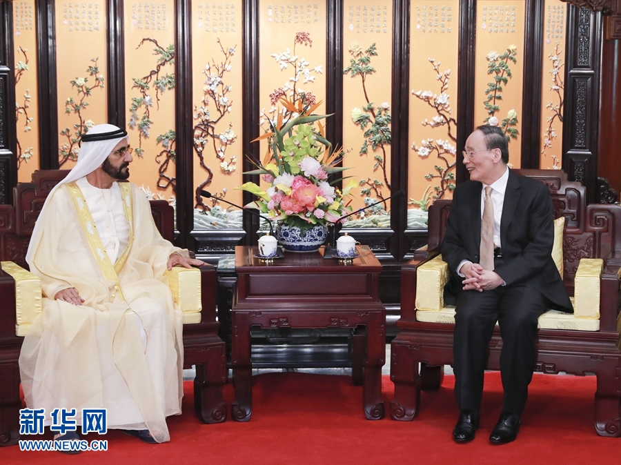 新華社北京4月26日電(記者溫馨)國家副主席王岐山26日在釣魚臺國賓館會見阿聯(lián)酋副總統(tǒng)兼總理、迪拜酋長穆罕默德。