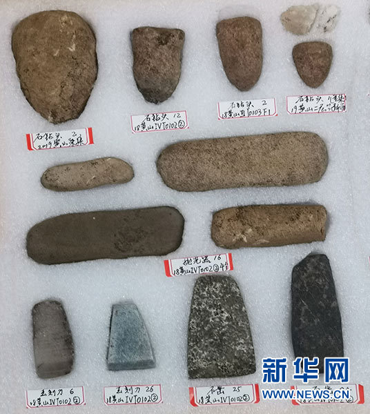 這是黃山遺址發掘出土的石鉆頭、石鑿、拋光器等制玉工具(4月29日攝)。新華社記者 桂娟 攝