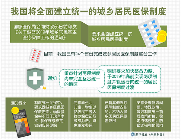 新華社北京5月13日電(記者張泉)國家醫保局會同財政部日前印發《關于做好2019年城鄉居民基本醫療保障工作的通知》,要求全面建立統一的城鄉居民醫保制度。