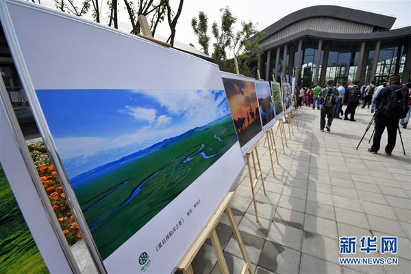 在北京世園會“內蒙古日”文化展示活動上展出的呼倫貝爾風光攝影作品(5月17日攝)。新華社記者 李欣 攝