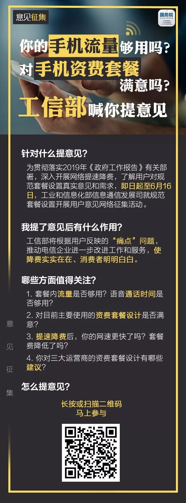 你的手機流量夠用嗎?對手機資費套餐滿意嗎?工信部喊你提意見