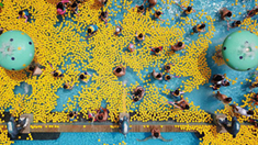 工作人員在中國(guó)國(guó)際服務(wù)貿(mào)易交易會(huì)主會(huì)場(chǎng)演示機(jī)器人智能裝配單元(5月28日攝)。任超 攝
