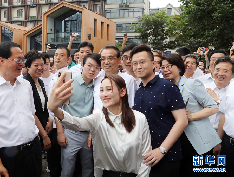 6月12日至13日,中共中央政治局常委、國務院總理李克強在浙江杭州考察。這是6月13日,李克強在夢想小鎮與青年創業者在一起。 新華社記者 劉衛兵 攝