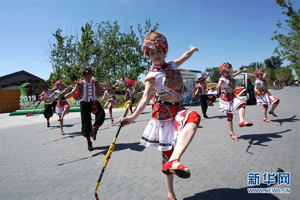 7月4日,演員在“湖北日”活動上表演舞蹈。當日,2019年中國北京世界園藝博覽會“湖北日”活動在北京世園會園區舉行。新華社記者 鞠煥宗 攝