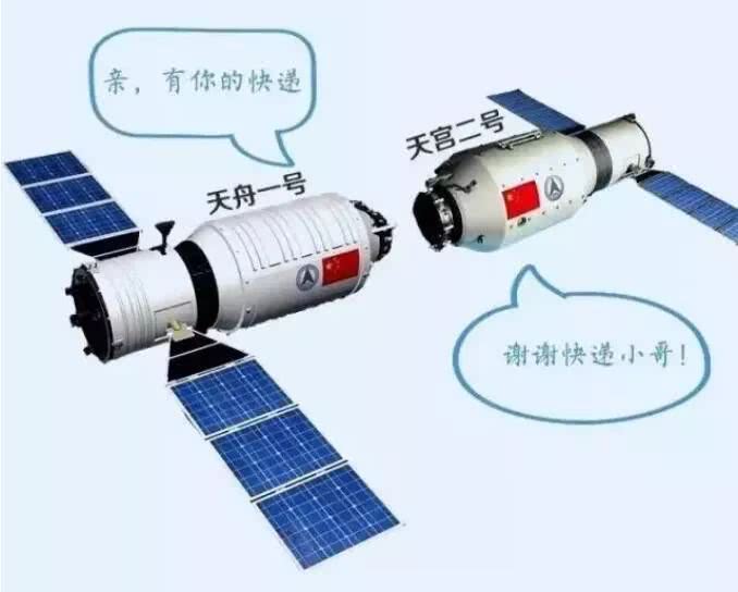 2017年4月20日,“二丫”的另一小伙伴“快遞小哥”天舟一號貨運飛船由長征七號運載火箭從海南文昌航天發射場發射升空。這位“快遞小哥”是中國的第一艘貨運飛船,全長10.6米,最大直徑3.35米,總重量有13噸,是中國目前最大、最重的航天器。