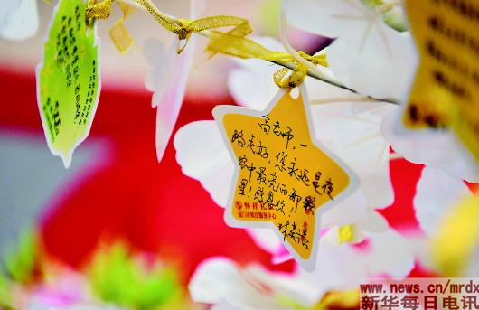 7月21日,廈門六中音樂老師高至凡曾教過的廈門六中合唱團(tuán)學(xué)生追念老師的留言。新華社記者魏培全攝