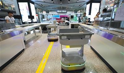 記者注意到,開包安檢員身旁有一臺小機器人,安檢員將書包放在機器人上方的行李筐內,機器人便自動將書包送到安檢口。每一條高效安檢通道都配置兩臺小機器人,以滿足可疑行李自動復檢的需要。(記者 吳婷婷)