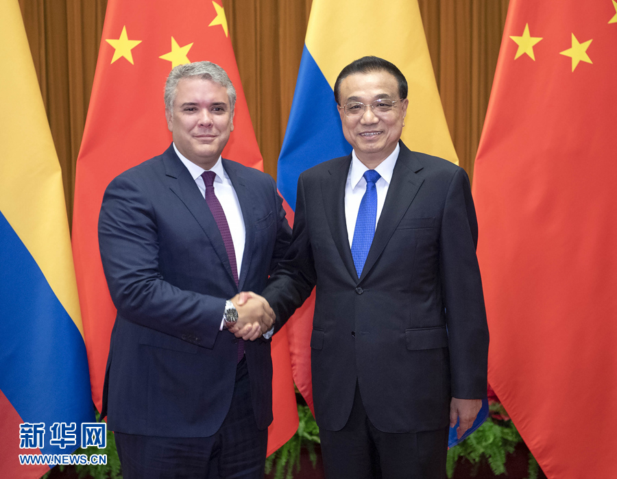 7月31日,國務(wù)院總理李克強(qiáng)在北京人民大會堂會見來華進(jìn)行國事訪問的哥倫比亞總統(tǒng)杜克。 新華社記者 李濤 攝