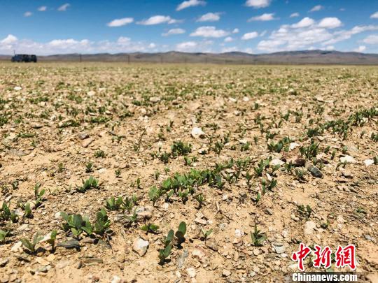 從曲麻萊縣城一路顛簸、跋山涉水6個小時,曲麻萊縣麻多鄉黨委書記洛周江措帶著記者來到了已經種植兩年的10萬畝中藥種植基地。這里,曾經是10萬畝已經嚴重沙化的草場。因為土地沙化嚴重,全鄉接近70%的牧戶都外遷到了格爾木和稱多縣的清水河鄉等地。