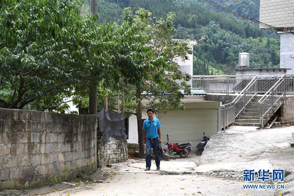 楊杰興在廣西樂業縣百坭村走訪(8月1日攝)。新華社記者 周華 攝