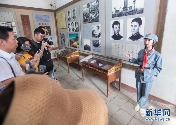 8月4日,來自湖北省麻城市乘馬中學的“小小講解員”在乘馬會館為記者講述紅色歷史故事。新華社記者 肖藝九 攝