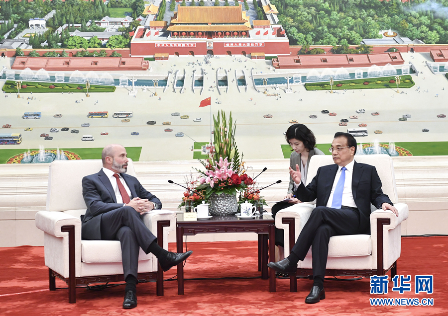 10月17日,國務院總理李克強在北京人民大會堂會見美中貿易全國委員會董事會主席格林伯格率領的訪華代表團并同他們座談交流。新華社記者 殷博古 攝