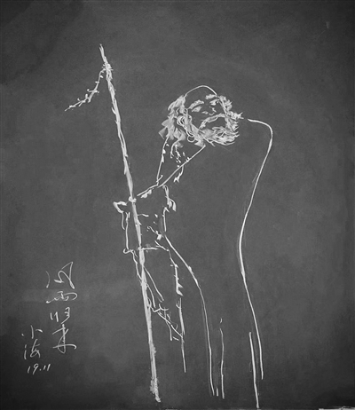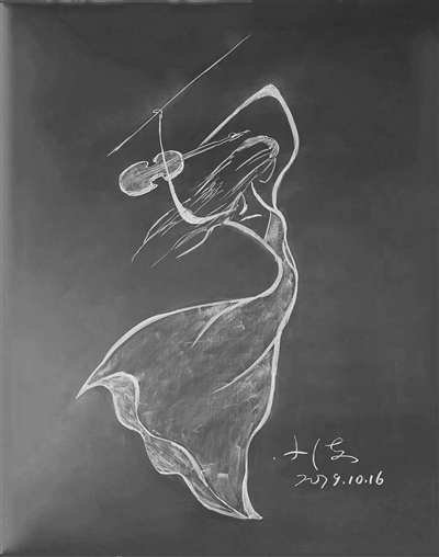 朱中海,揚州高等職業(yè)技術(shù)學(xué)校基礎(chǔ)教育部主任、數(shù)學(xué)教師。今年57歲的他,已教了35年數(shù)學(xué)。揚子晚報記者昨日找到朱老師,看到了他去年和今年“創(chuàng)作”的粉筆畫。之所以要用“創(chuàng)作”這個顯得正式的詞語,因為記者眼里的這些粉筆畫,雖寥寥數(shù)筆,卻鮮活靈動,宛如藝術(shù)品。沒有一定的功力,僅僅靠一些數(shù)學(xué)上的曲線,是無法完成的。