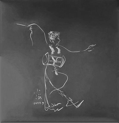 揚子晚報記者注意到,這些用“數(shù)學(xué)語言”繪成的粉筆畫,有修長的女子,有年邁的老人,有頑皮的孩童,有淘氣的小貓;從動作上看,有的在遠(yuǎn)望,有的在賞花,有的在舞蹈,有的在拉琴,有的在采摘,有的在打球,有的在觀察小蟲;從色彩上看,有的只有白色或粉紅色一種顏色,有的有兩種顏色,但不超過三種顏色。無論是一種顏色還是有限的兩三種顏色,作品都生動傳神,幾條柔和的曲線稍作組合,寥寥數(shù)筆,就賦予了作品生命力,顯示了作者嫻熟高超的繪畫技巧。每幅畫的角落,有的還寫上了“童趣”、“采摘”、“風(fēng)雨歸來”、“運動美”的標(biāo)題,每一幅畫都署名“小海”,行書字體也和畫面一樣流暢靈動。年近花甲的朱老師以“小”自稱,體現(xiàn)了他率真謙虛的性格和對工作的態(tài)度。