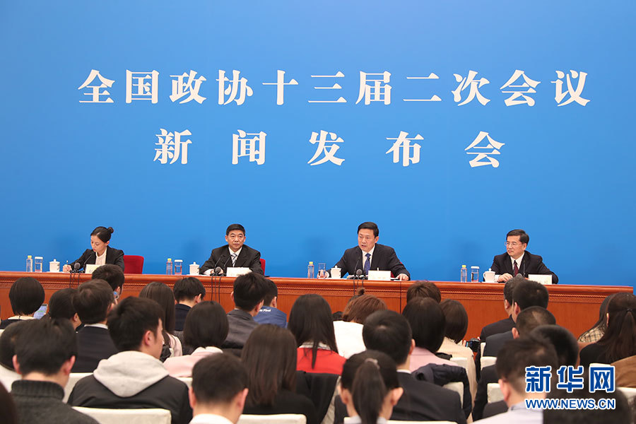 圖片說明全國政協十三屆二次會議新聞發布會于3月2日15:00在人民大會堂一層新聞發布廳召開,大會新聞發言人郭衛民向中外媒體介紹本次大會有關情況并回答記者提問。圖為新聞發布會現場。新華網/中國政府網 陳杰 攝