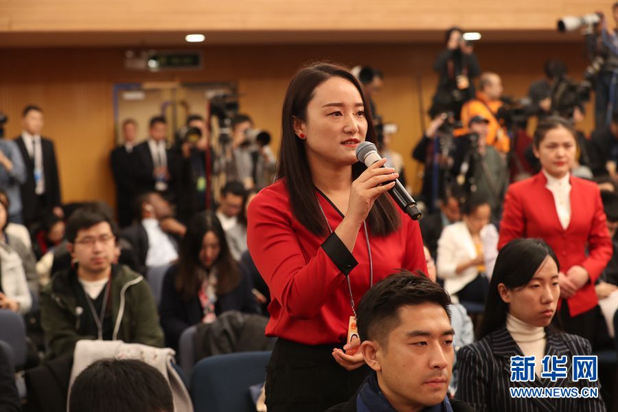 十三屆全國人大二次會議新聞中心于3月7日10時50分在梅地亞中心新聞發布廳舉行記者會,邀請國務院扶貧開發領導小組辦公室主任劉永富就“攻堅克難——堅決打贏脫貧攻堅戰”相關問題回答中外記者提問。圖為中國扶貧雜志記者提問。新華網 陳杰 攝