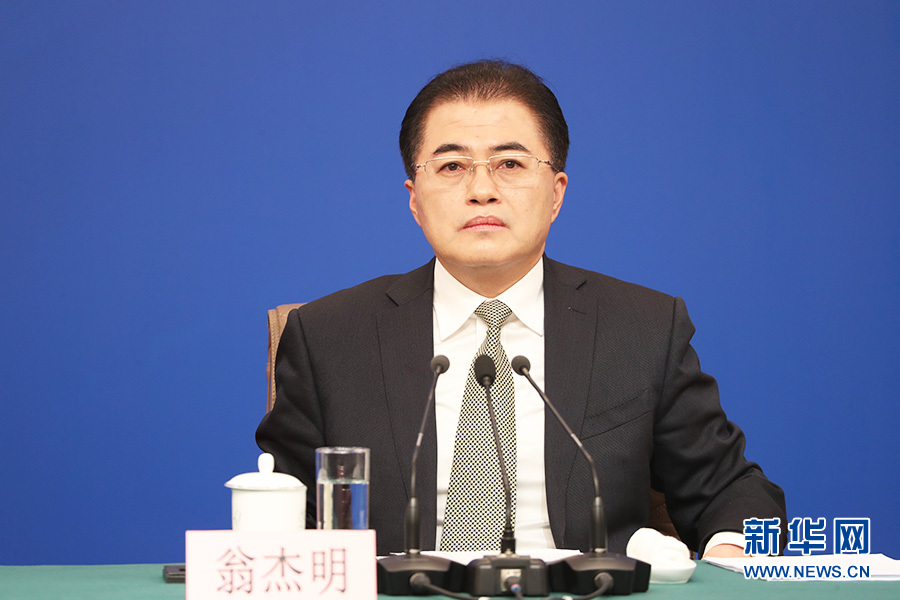 十三屆全國人大二次會議新聞中心3月9日(星期六)15時在梅地亞中心新聞發布廳舉行記者會,邀請國務院國資委主任肖亞慶,副主任翁杰明,秘書長、新聞發言人彭華崗就“國有企業改革發展”相關問題回答中外記者提問。圖為翁杰明回答記者提問。新華網/中國政府網 陳杰 攝