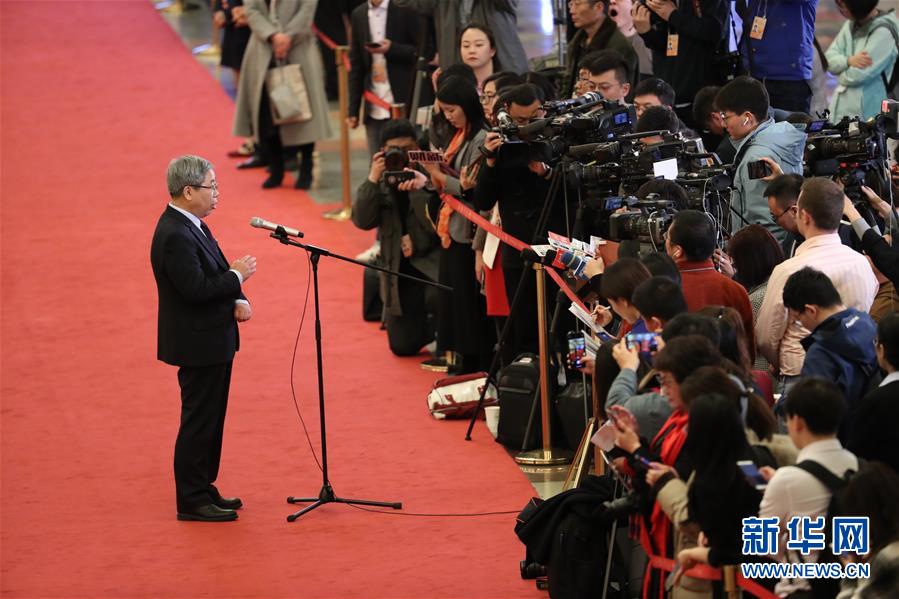 3月12日,十三屆全國人大二次會議在北京人民大會堂舉行第三次全體會議。這是教育部部長陳寶生在“部長通道”接受采訪。 新華社記者 金立旺 攝
