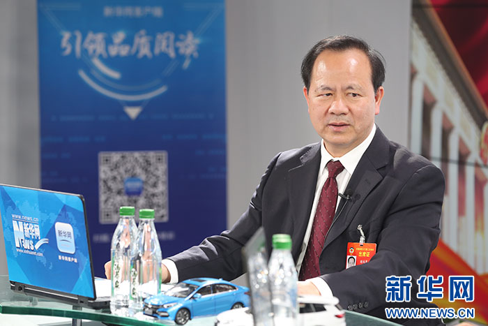 3月13日, 全國政協委員,廣西民族大學黨委副書記、校長謝尚果做客新華網2019全國兩會特別報道。 新華網 郭小天 攝