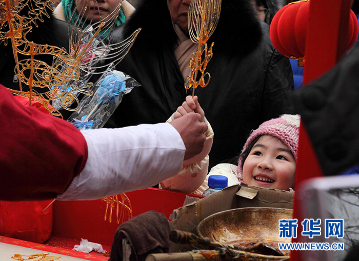 2014年2月4日,一名女孩在廠甸廟會上挑選老北京手工藝品。(圖片來源:新華社 記者郝麗穎 攝)